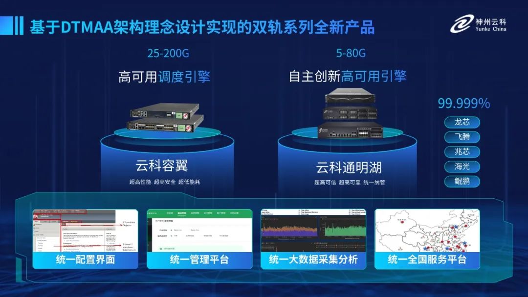 为了更好的适配双轨超高可用架构,神州泛亚电竞研发了容翼系列和泛亚电竞通明湖信创系列两大应用交付控制器产品。